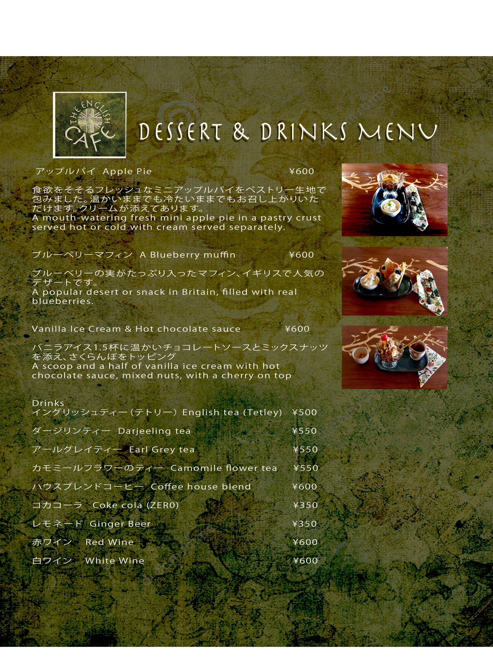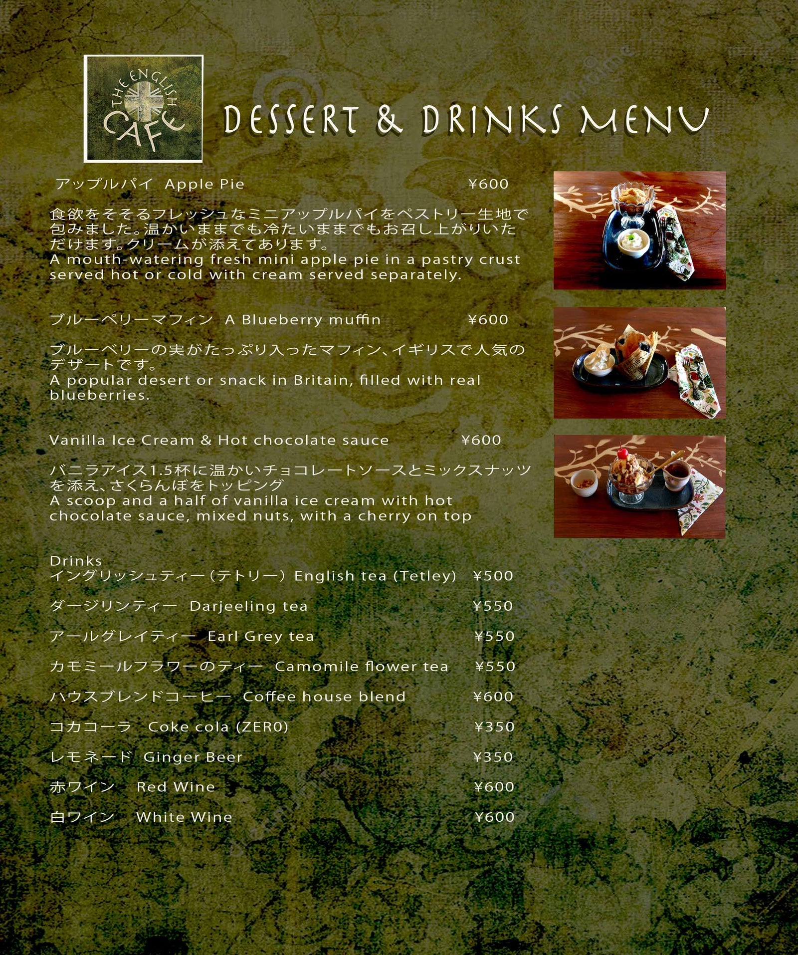 The English Cafe, Main Menu