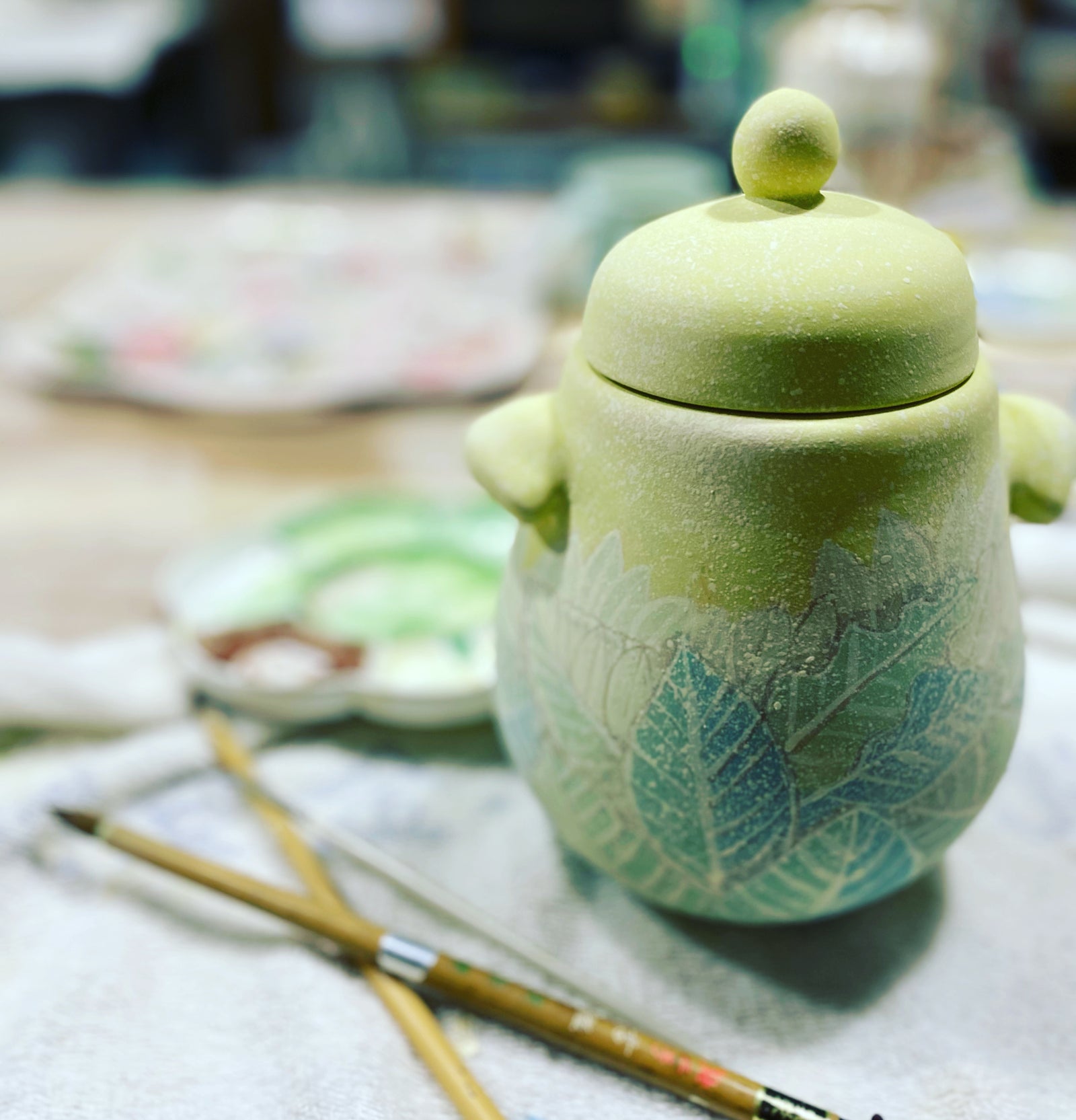 A bright green small vase